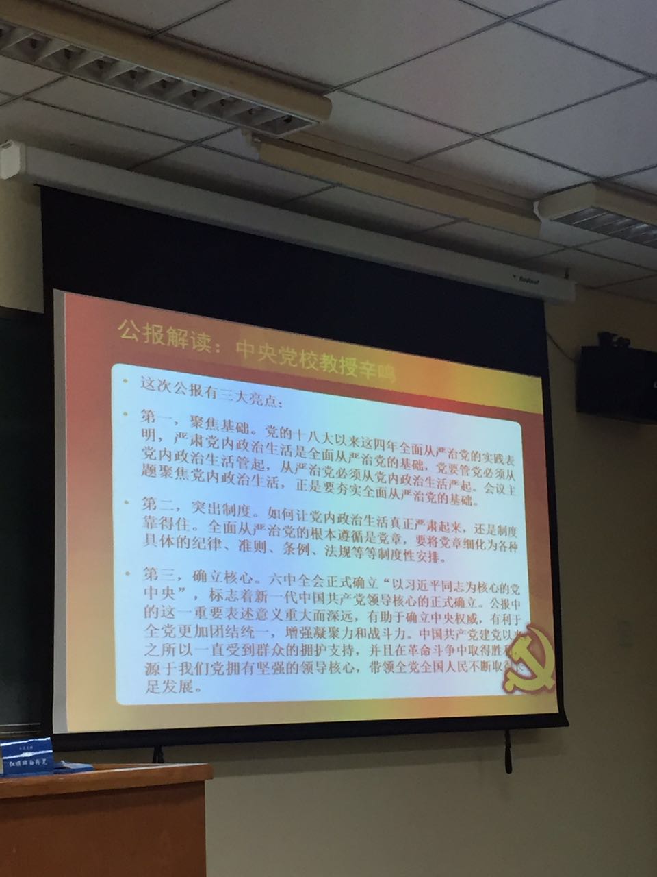 为促进党团员进一步学习党团知识,保持党员团员先进性,加强老员工思想政治教育,在党的十八届六中全会顺利召开,以及长征胜利80周年之际,mk体育于2016年11月22日晚七点,在逸夫楼305教室举办了十八届六中全会精神暨长征精神学习会。