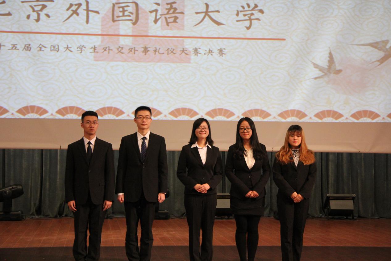 11月26至27日,第十五届全国老员工外交外事礼仪大赛在外交公司成功举行,来自澳门大学、北京大学、清华大学、外交公司等全国各地的三十支代表队展开了激烈角逐。最终,由公司2014级本科生徐颖、尚凌锋,2015级本科生李明阳,西班牙语葡萄牙语系2015级本科生程龙、杨裕嘉五位同学组成的mkmksport代表队获得了冠军。