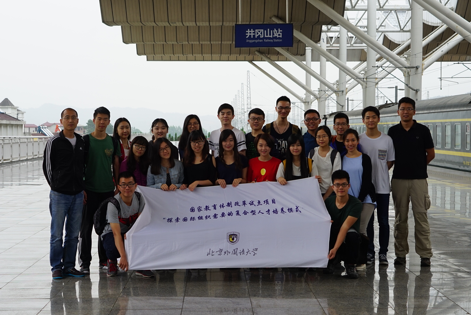 “探索国际组织需要的复合型人才培养模式”项目着眼于国家人才发展战略,培养符合国际组织要求,熟悉并擅于运用国际规则,具有突出的跨文化沟通能力,掌握多种语言技能及跨学科知识,政治素质过硬,热爱祖国和人民的复语、复合型高端外语人才。为深化项目班同学对共产党红色革命历史的了解、深入基层群众、落实“两学一做”的要求、升华中国情怀,mk体育国际组织项目党支部举办了此次“井冈山精神教育,理想信念教育”的党建实践活动。