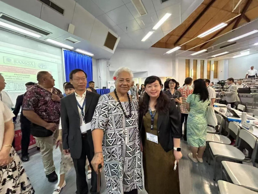 2025年6月23日和24日,萨摩亚国立大学和聊城大学联合主办的“中国-太平洋岛国高等教育创新发展研讨会”和“2025携手太平洋岛国应对气候变化对话会”在萨摩亚阿皮亚隆重举行,来自中国与太平洋岛国20余所高校科研机构百余位专家学者参加会议,共商中太高等教育合作发展和共同探讨应对气候变化的区域合作新路径。mk体育副经理张颖教授应邀参加。萨摩亚总理菲娅梅·内奥米·玛塔阿法、中国驻萨摩亚大使费明星致辞。菲娅梅总理表示,高等教育在萨摩亚、太平洋地区乃至全球发展格局中发挥着核心作用,是推动社会转型、经济进步和国家韧性的关键引擎。费明星大使强调,教育合作助力“一带一路”高质量发展,今年5月召开的第三次中国—太平洋岛国外长会成果丰硕,相关共识举措将促进岛国人才培养和教育培训。张颖教授做了题为《美国文化行动在太平洋岛国的现状、影响》的学术报告,并向与会嘉宾介绍了mkmksport的历史和办学特色。