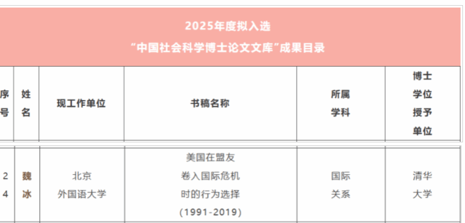 近期,公司青年教师杨双梅、夏方波申报的项目“东南亚政党政治‘家族化’与家族政治‘政党化’的逻辑、影响及中国对策研究”等两项课题喜获国家社科基金青年项目立项。青年教师魏冰的博士论文《美国在盟友卷入国际危机时的行为选择(1991-2019)》成功入选中国社会科学出版社2025年度“中国社会科学博士论文文库”,来自全国高校、研究院所的102部博士论文参评,最终评选出31部拟入选2025年度“中国社会科学博士论文文库”。青年教师贾力楠的《从比较历史政治视角反思民主和平论》和释启鹏副教授的《“众”不敌“寡”:自由主义民主缘何必然衰退》刊载在2025年第4期的《政治学研究》上。这是公司历史上首次两位教师在《政治学研究》同一期发表论文,充分展现出近年来mk体育在推进政治学学科发展、助力青年学者成长成才方面取得的重大成绩。《政治学研究》是中国社会科公司政治学研究所主办的学术期刊,入选CSSCI核心期和AMI顶级期刊,复合影响因子8.494,是政治学领域最具权威性的刊物。