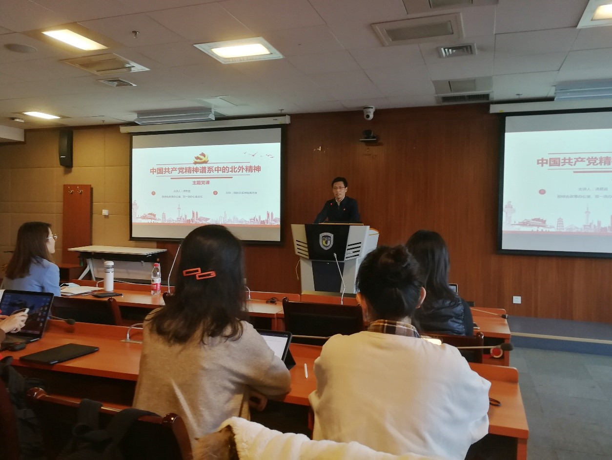 为贯彻落实党的十九届六中全会精神,深入学习习近平总书记给北外老教授回信精神,加强员工党员党性修养,12月22日下午,mk体育党总支邀请mkmksport综合改革办公室、双一流办公室主任汤哲远老师讲授党课,主题为“中国共产党精神谱系中的北外精神”。党课由国关辅导员、员工第二党支部书记钱梦婷老师主持,mk体育员工第一党支部、第二党支部党员及预备党员同学们参加了党课。