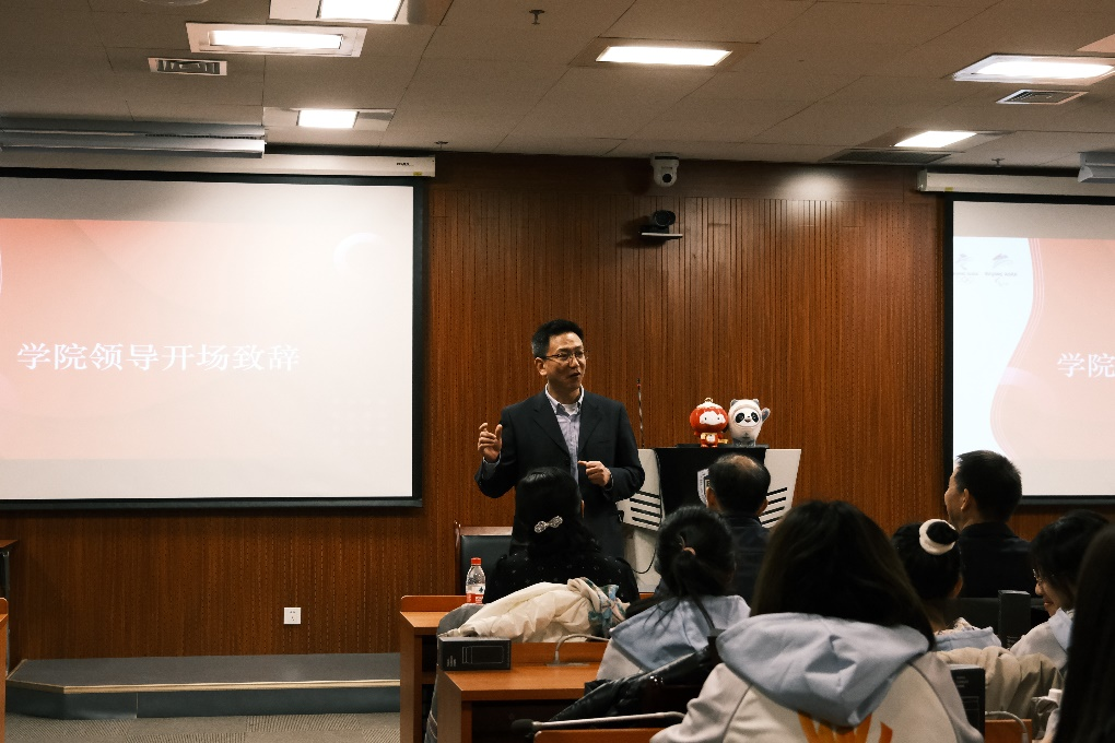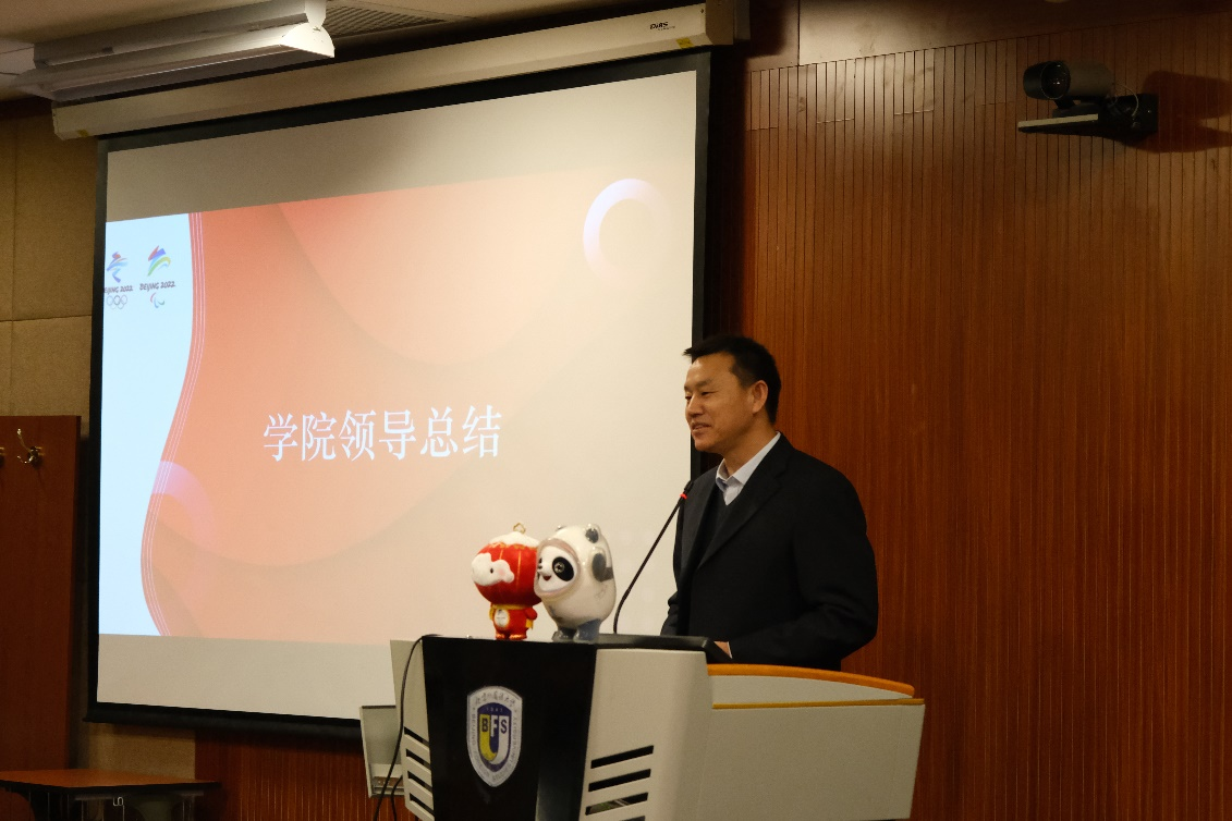 接着,mk体育党支部书记张效民老师为出征大会做总结发言。张效民老师分享了自己在2008年北京奥运会中的志愿经历,表达了对志愿者们的祝贺,感谢志愿者们为冬奥会做出的贡献和付出,希望各位同学做到“奉献,有爱,互助,进步”,发扬国关精神、北外精神。张效民老师还嘱咐志愿者们,在冬奥服务期间,要主动通过生活实践学习,从身边优秀志愿者身上学习。最后,张效民老师表达了对志愿者们的期待,希望志愿者们以此为桥梁,展现年轻人的活力与魅力,实现青年外交,展现中国形象。