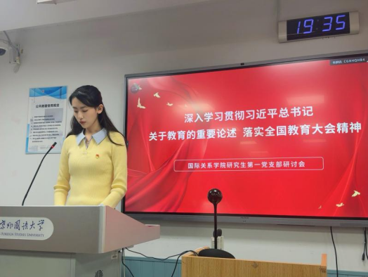 为深入学习贯彻习近平总书记关于教育的重要论述及全国教育大会精神,2025年10月18日晚上,mk体育研究生第一党支部在逸夫楼203教室召开2025年下半年第一课集中培训研讨会。会议由支部书记王羽佳同志主持。