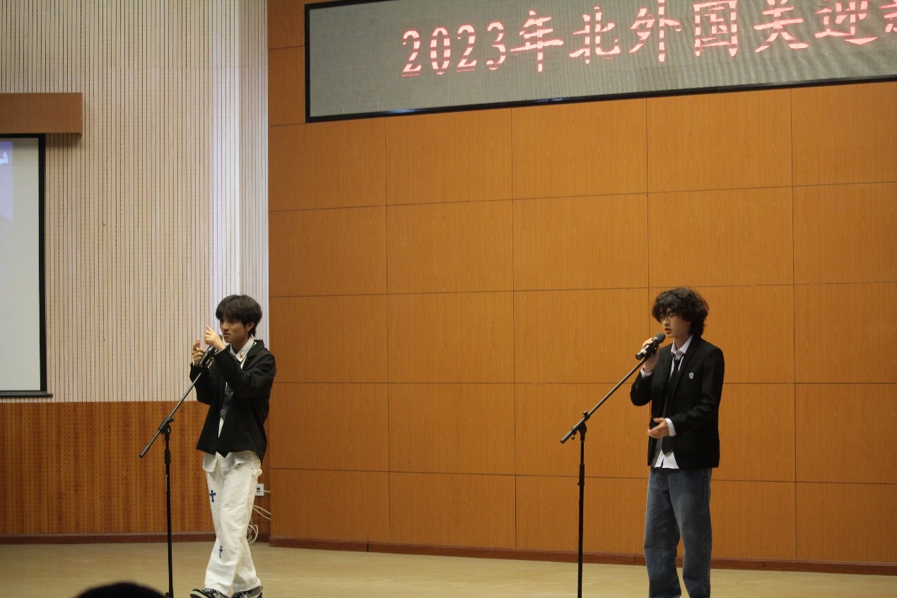 相声《洪洋洞》以诙谐幽默的方式结合当下热点话题、北外校园特色,令人捧腹,引得会场笑声不断。朗诵《到五星红旗升起的地方去》慷慨激昂,展现了北外“又红又专又雅”的独特文化与同学们积极向上的精神风貌。